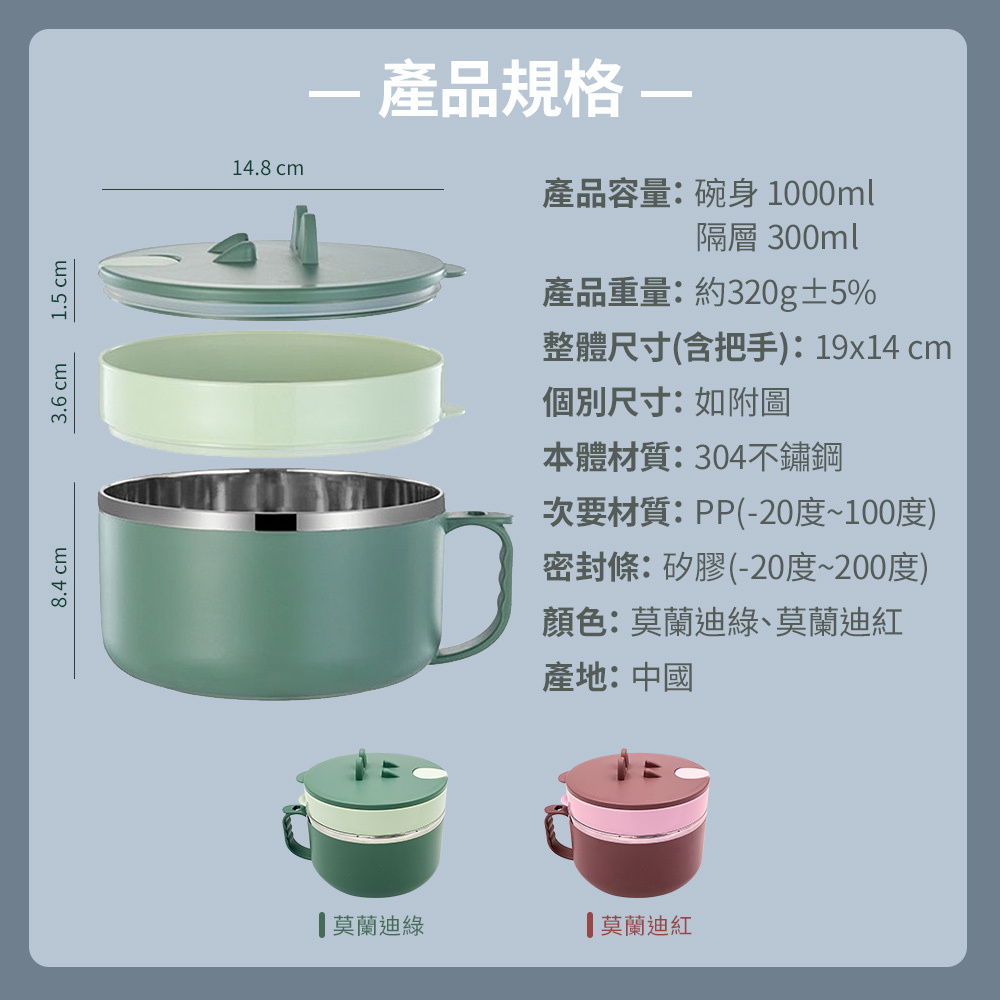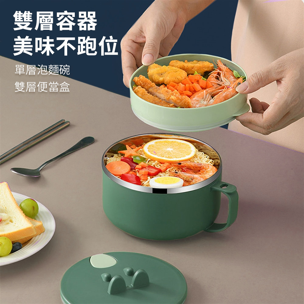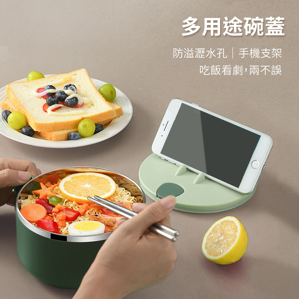 追劇必備神器,保溫耐用,輕鬆享受美味!不鏽鋼雙層泡麵碗,專為現代生活設計,具備304食品級不鏽鋼,防腐防鏽,安全耐用,經久不變形。雙層保溫設計有效保持食物溫度,讓您的泡麵、湯品或便當保持溫熱,隨時享受美味。莫蘭迪綠與莫蘭迪紅兩色可選,時尚簡約,完美搭配您的餐桌或辦公桌。大容量設計,能同時裝下兩塊泡麵,並配有多功能碗蓋,具備防溢瀝水孔、手機支架等實用功能,提升您的用餐體驗。